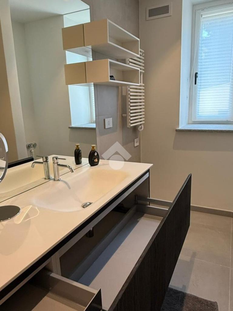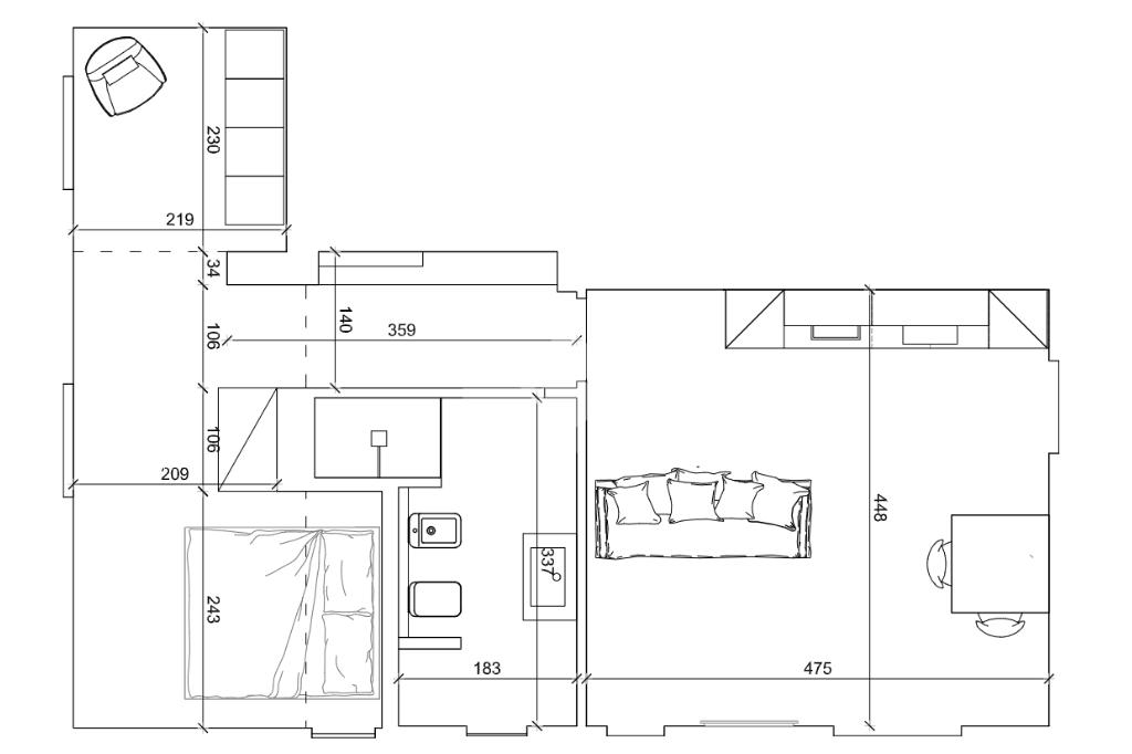 L’alloggio, accessoriato di ogni comfort è completamente arredato; si dispone in soggiorno living con angolo cottura, disimpegno, bagno, camera matrimoniale e studio.