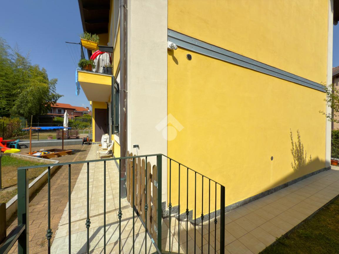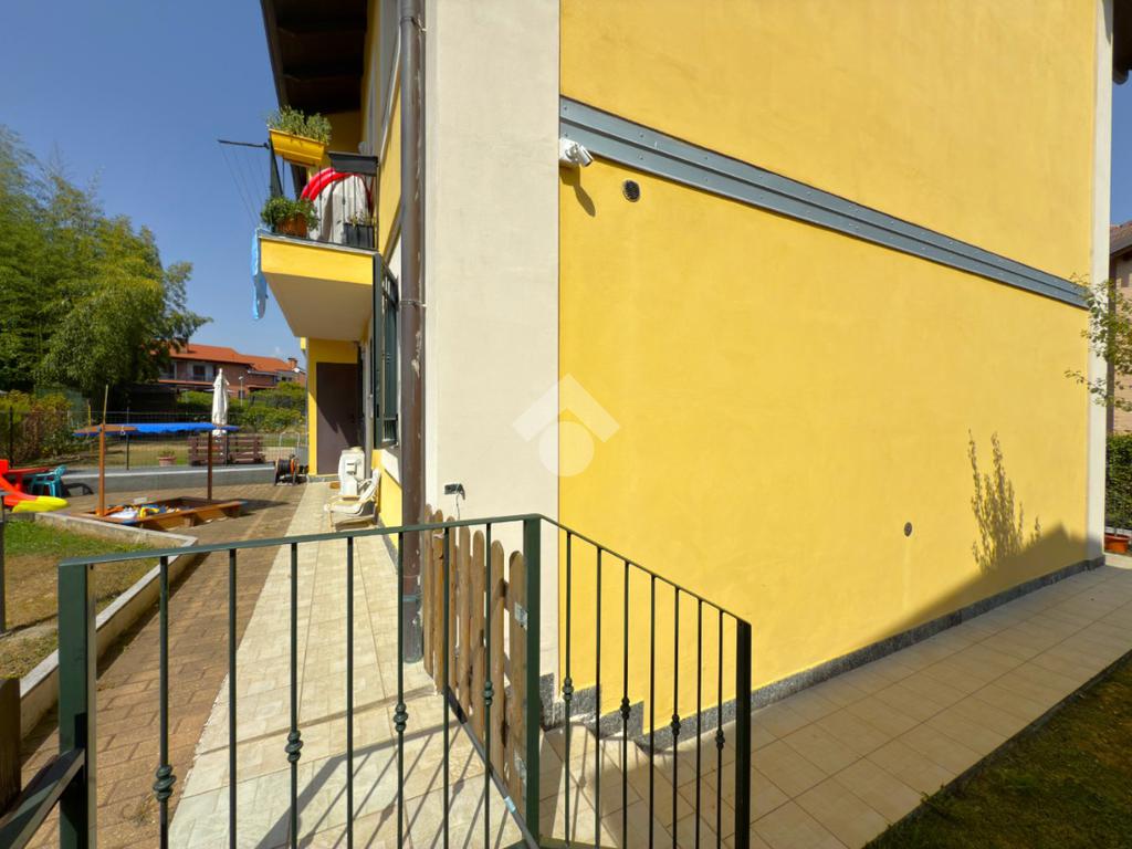 GIAVENO: Nella Zona dei campi sportivi, ad una passeggiata dal centro del paese, appartamento piano terra con giardino su tre lati.