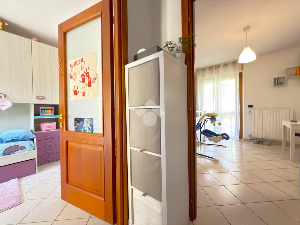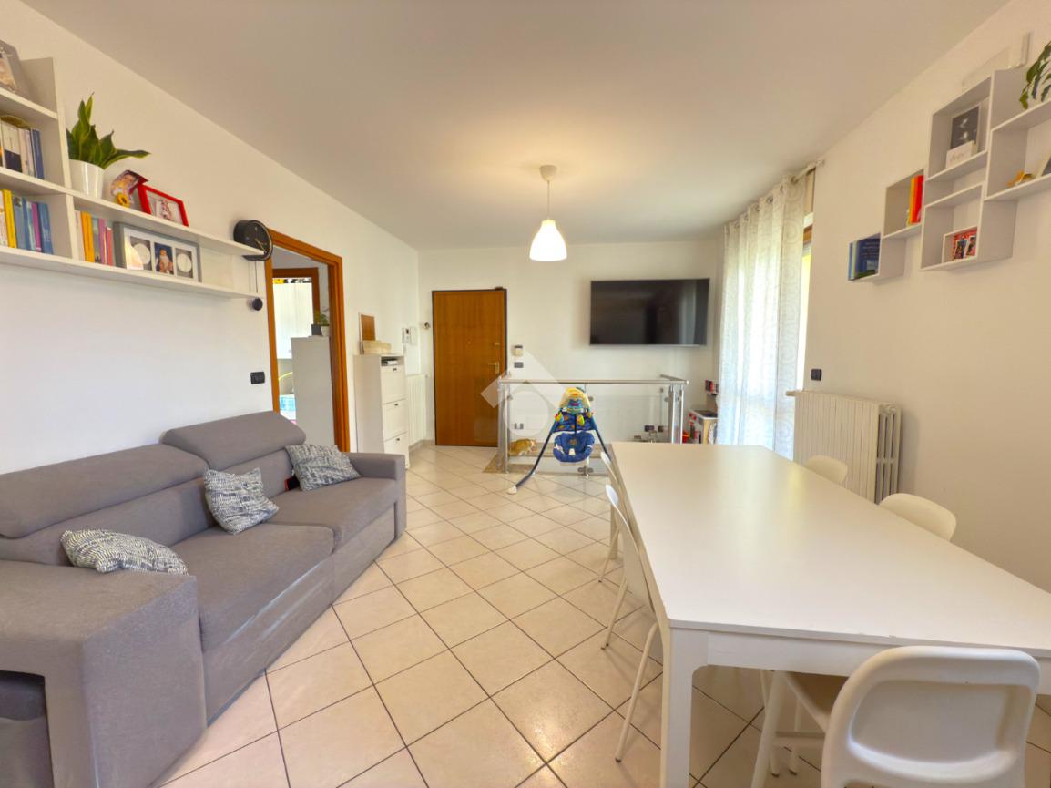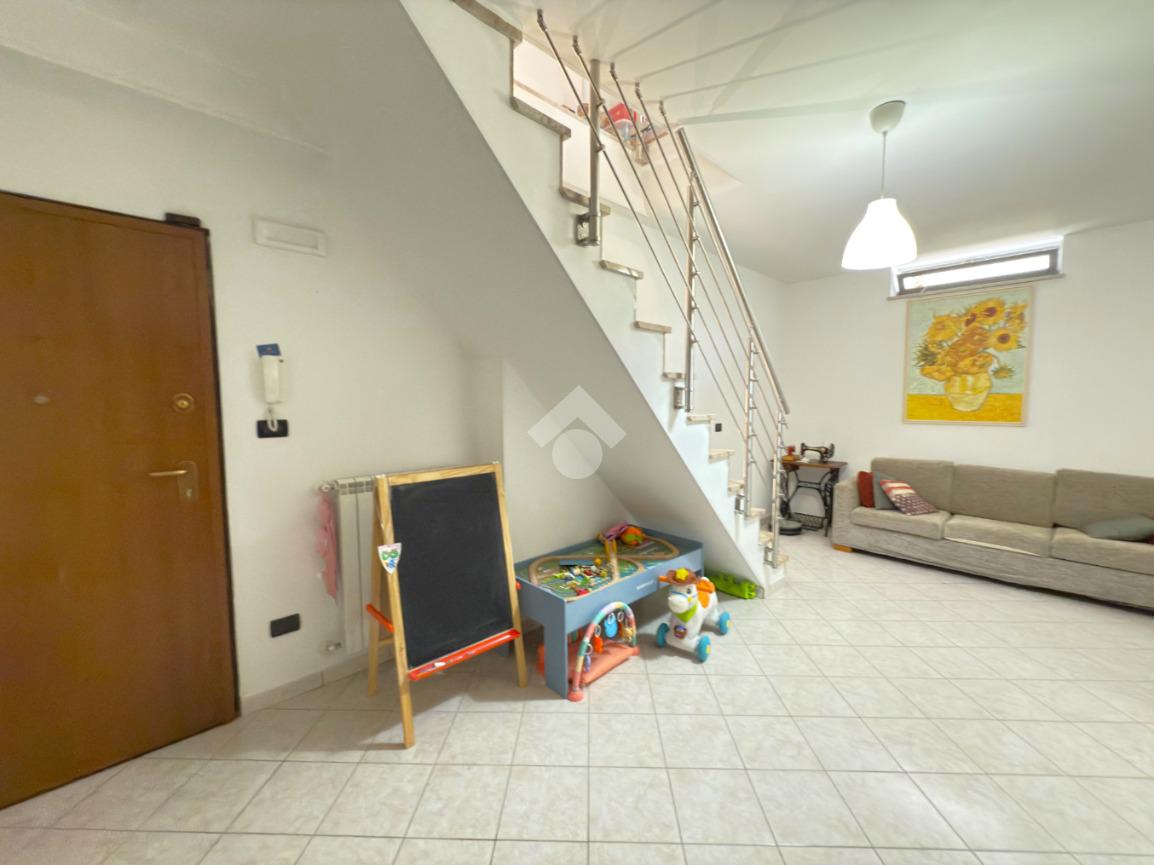l'immobile è composto dall'ingresso living in soggiorno con cucina a vista e uscita diretta sul terrazzo, il disimpegno, due camere da letto ed il bagno;