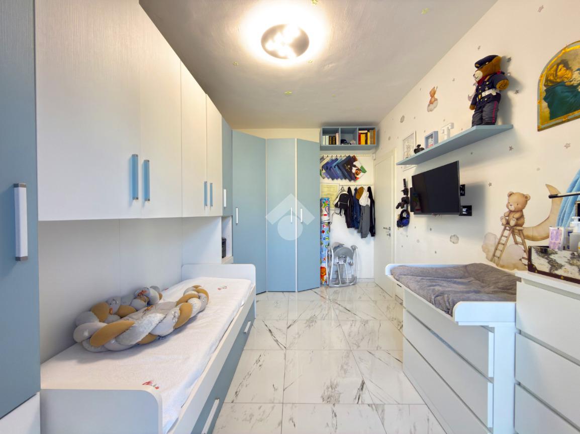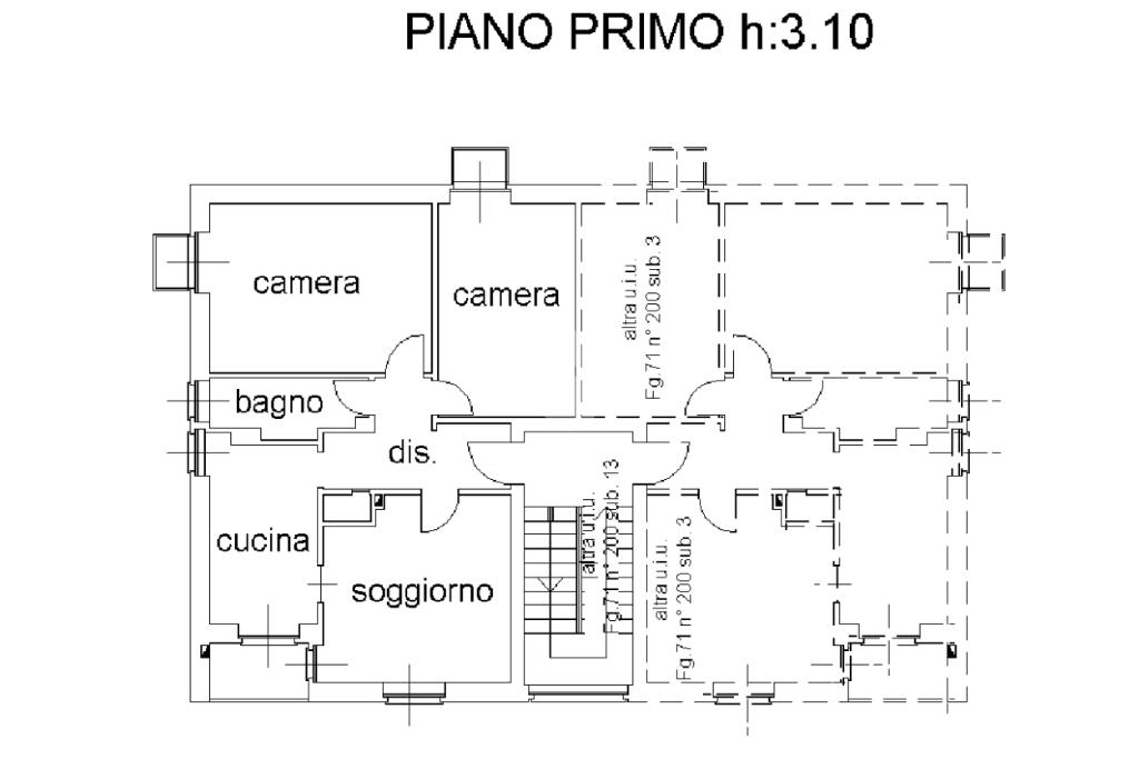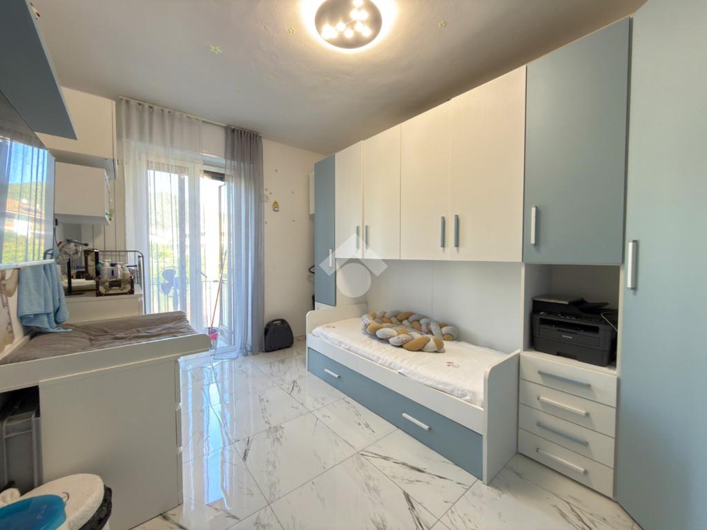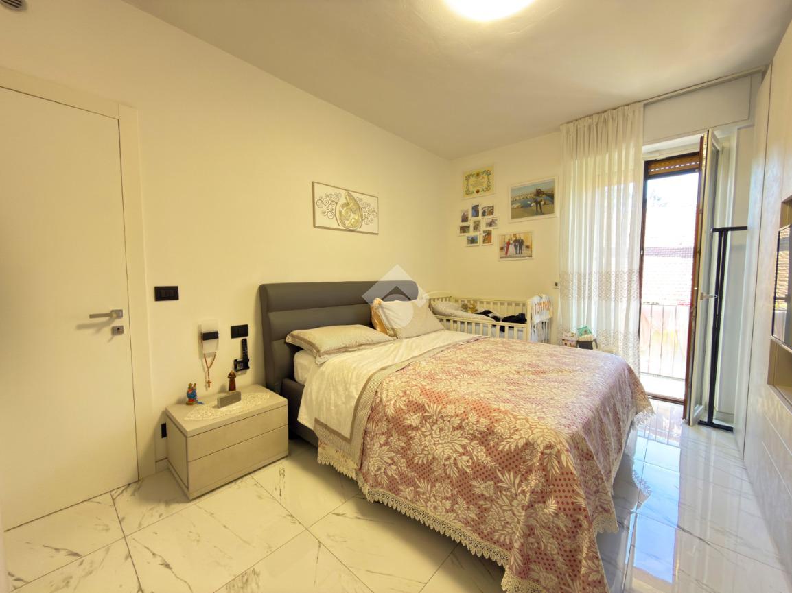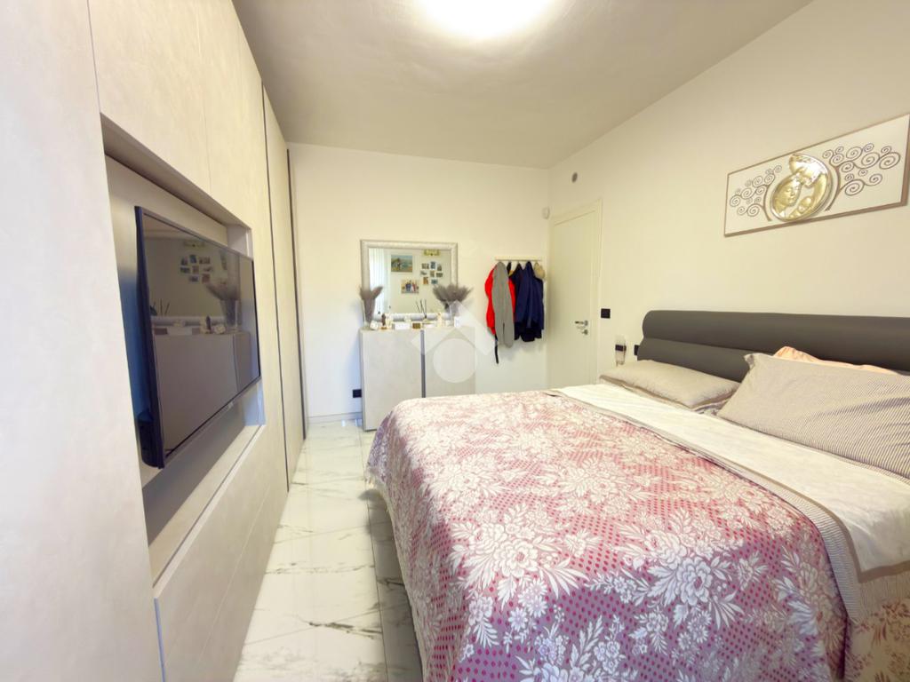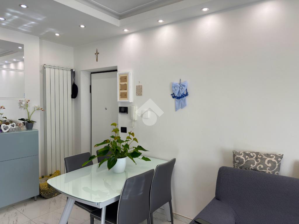 L'immobile è situato al primo piano ed è composto dall'ingresso living in soggiorno con cucina a vista e uscita sul balcone, il disimpegno, una camera da letto con balcone, il bagno con doccia ed una seconda camera da letto con balcone.