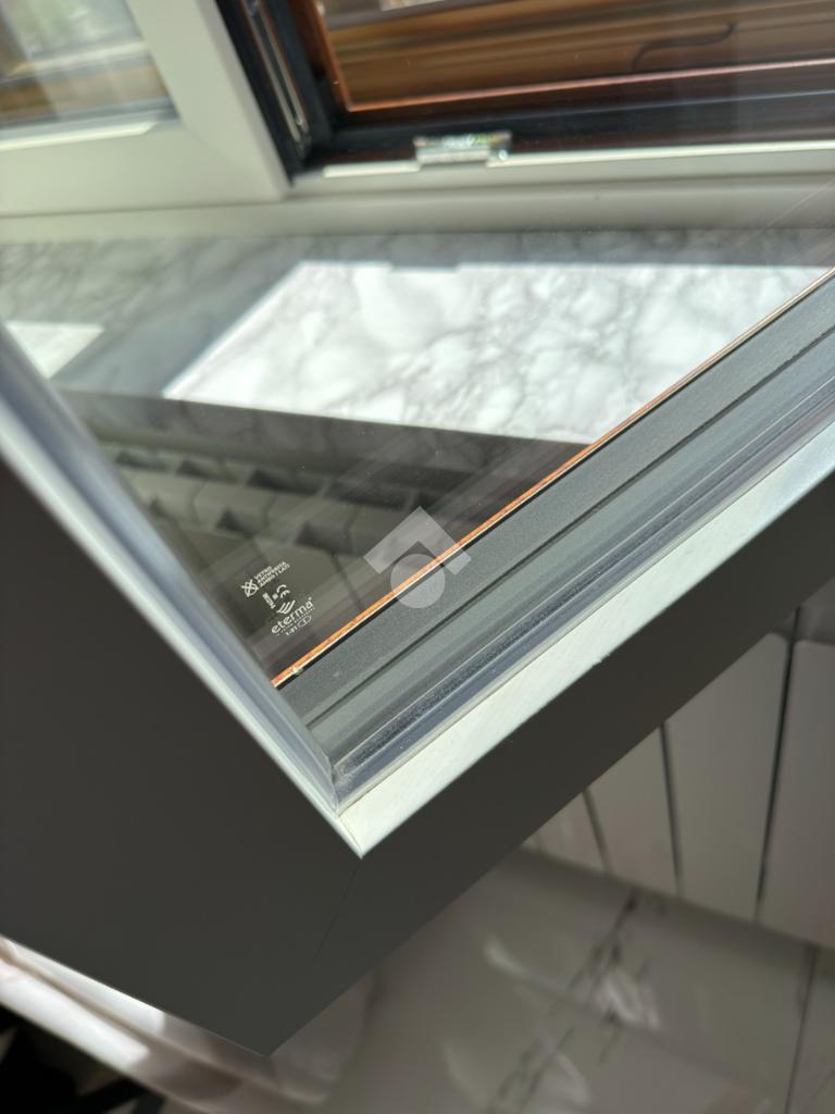 Infissi triplo vetro in alluminio sulla parte esterna ed in legno internamente.
