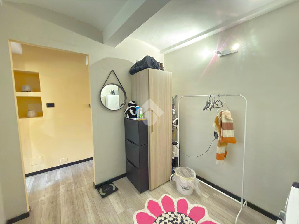 L'immobile è situato al secondo piano (terzo fuori terra) ed è composto dall'ingresso living in soggiorno con cucina a vista, il disimpegno, un locale adibito a lavanderia, il bagno con doccia, la camera da letto matrimoniale con uscita diretta sul balcone,l'ampia cabina armadio (facilmente convertibile in seconda camera da letto) con uscita diretta sul balcone.
