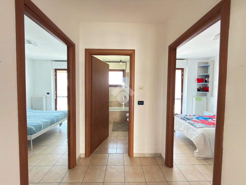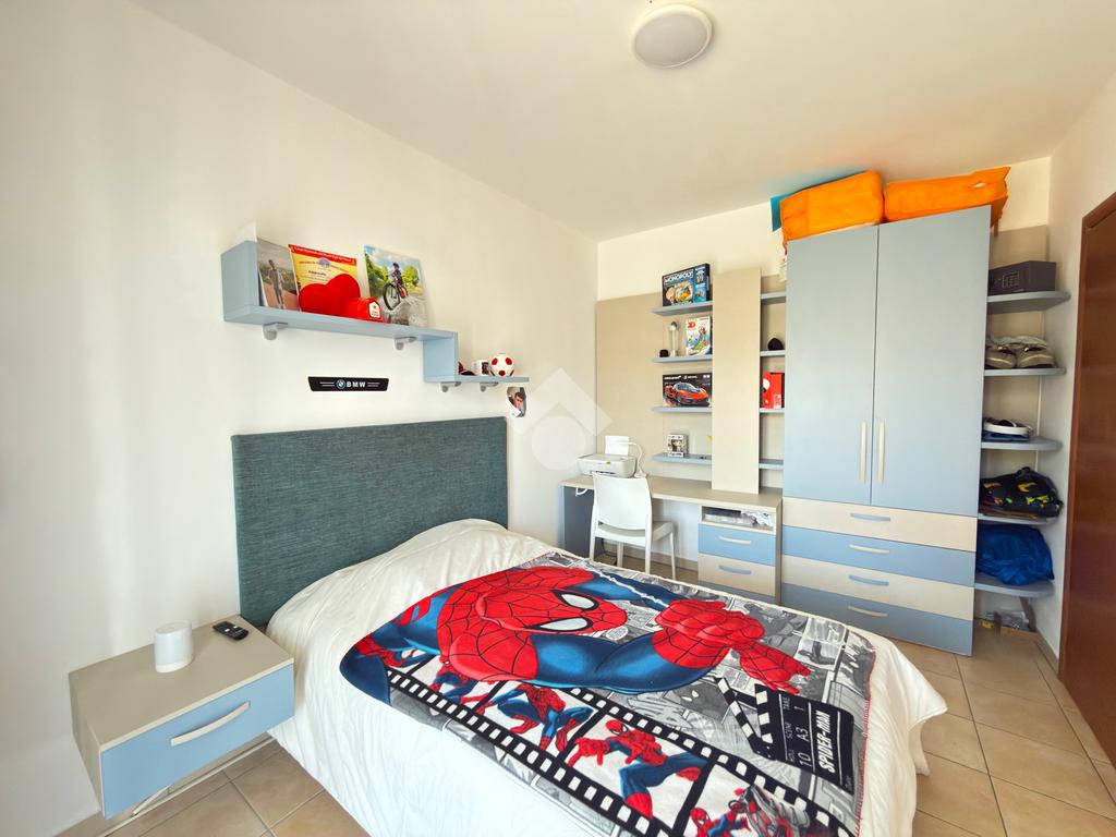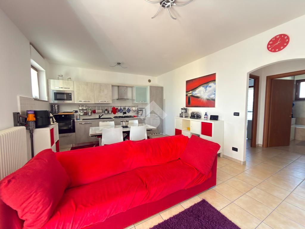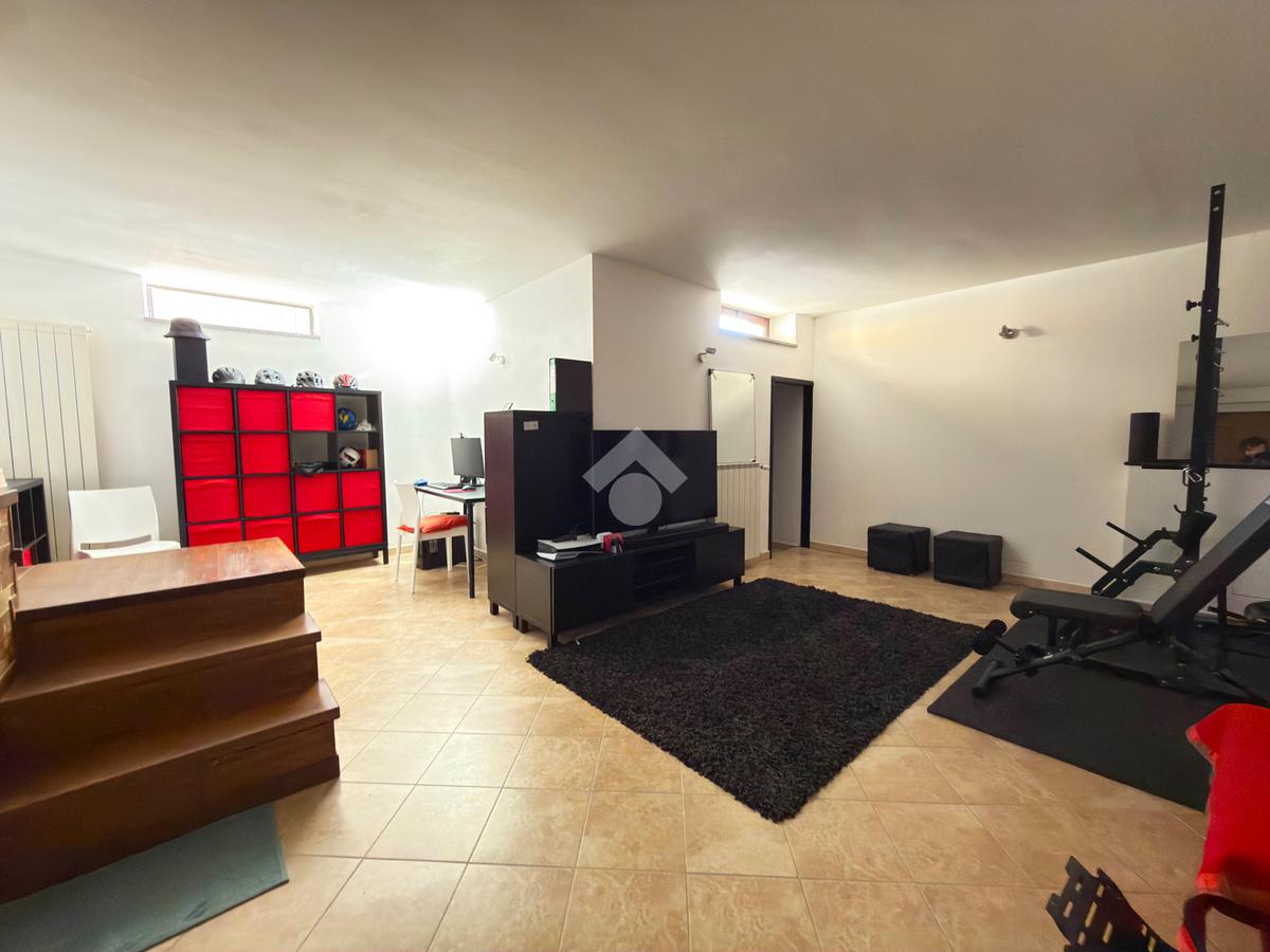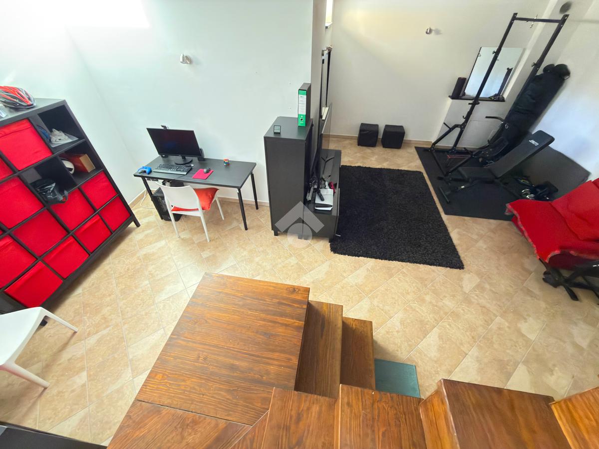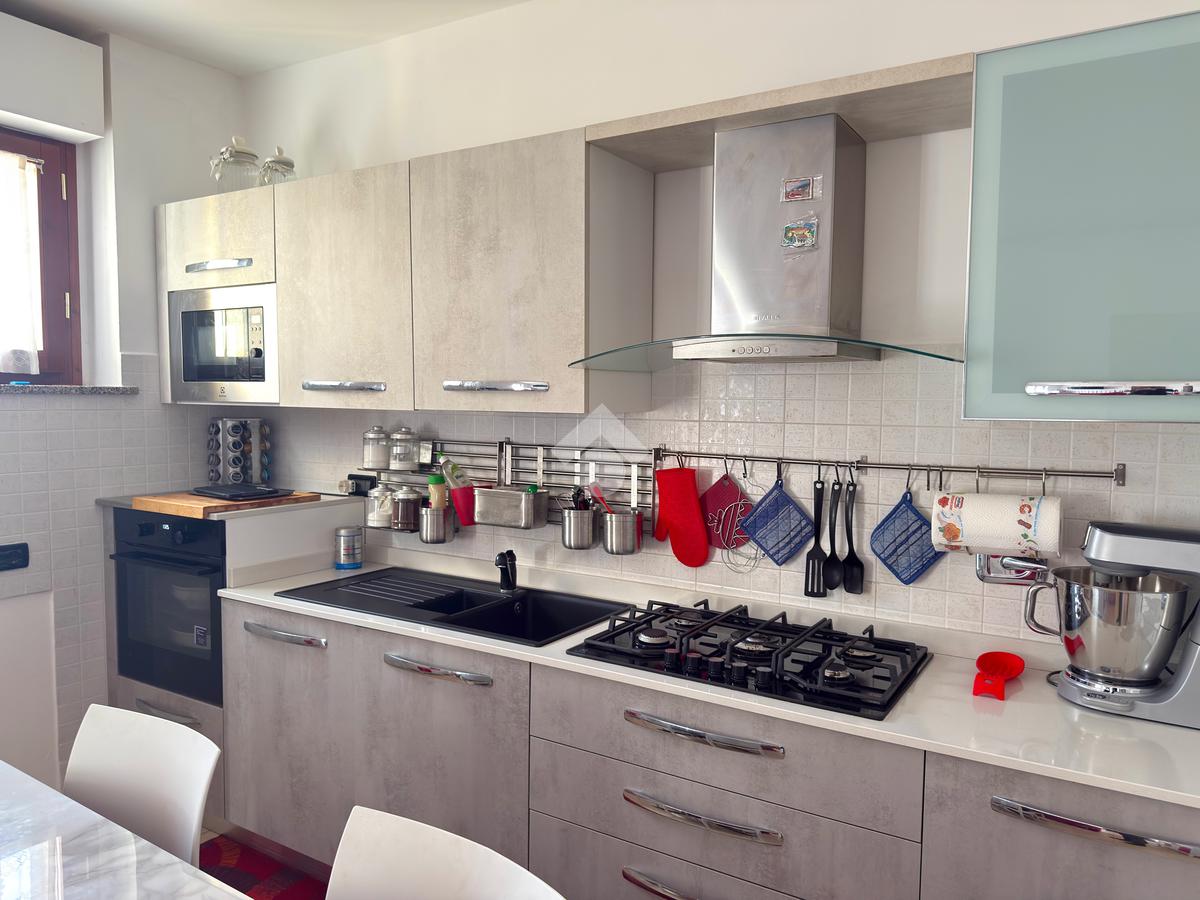 E' situato al piano rialzato all'interno di una palazzina di sole quattro unità abitative ed è composta dall'ingresso living in soggiorno con cucina a vista, il disimpegno, due camere da letto ed il bagno; Tramite las cala interna in muratura si accede al piano seminterrato (finestrato) composto da un grosso locale, la lavanderia ed un ripostiglio.