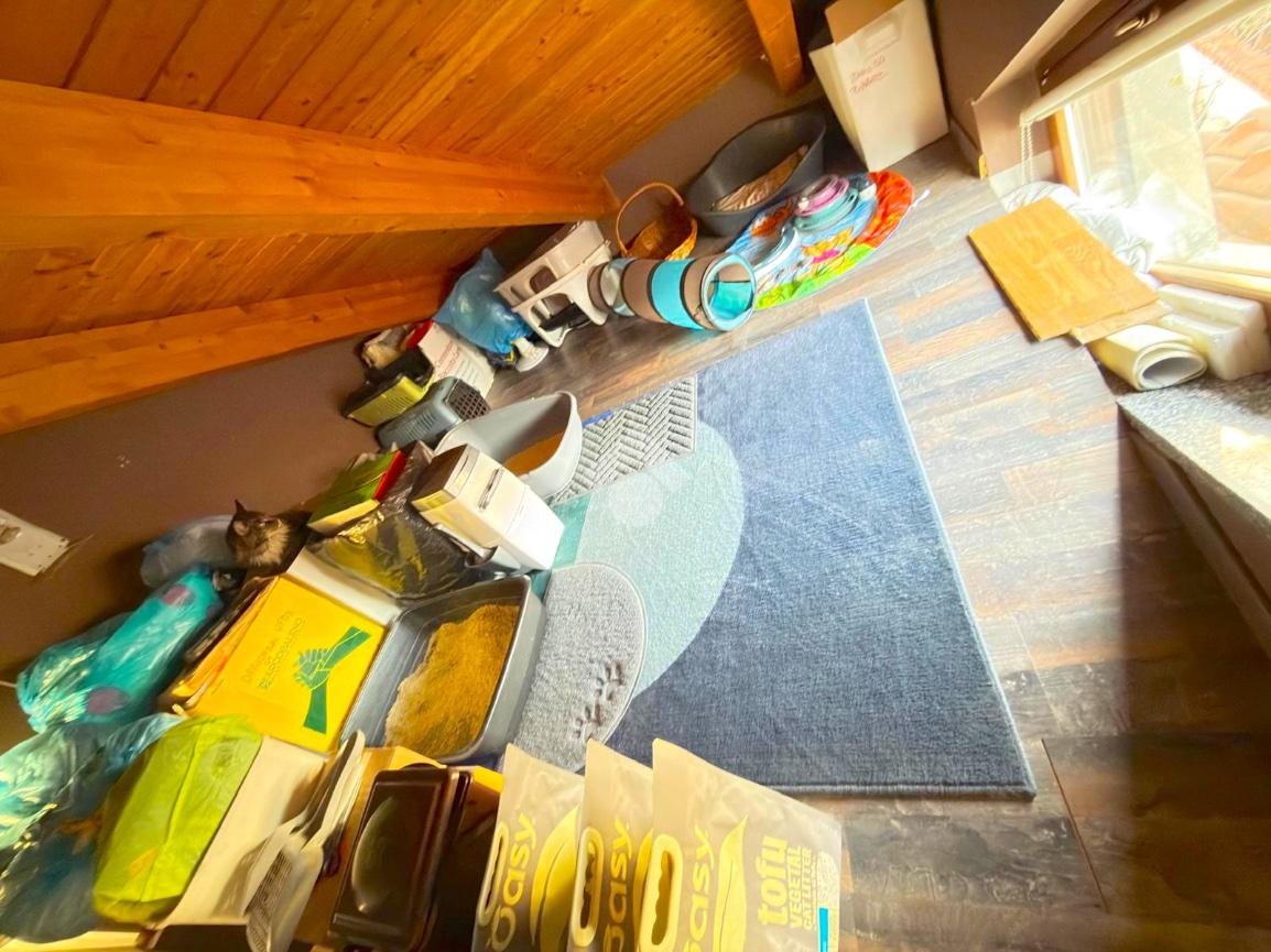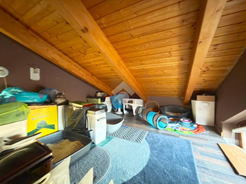 L’immobile è situato al secondo ed ultimo piano all’interno di uno stabile di poche unità abitative, privo di spese condominiali; Percorrendo la scala interna condominiale si accede al balcone privato dell’abitazione dove troviamo l’ingresso composto da ambiente living con cucina a vista, camera, antibagno con zona lavanderia ed il bagno; Nella zona del soggiorno è presente una scala interna tramite la quale è possibile accedere ad un locale mansardato sfruttabile per ampliare gli spazi dell’abitazione. L’immobile inoltre è dotato di una zona armadi a soffitto su misura.