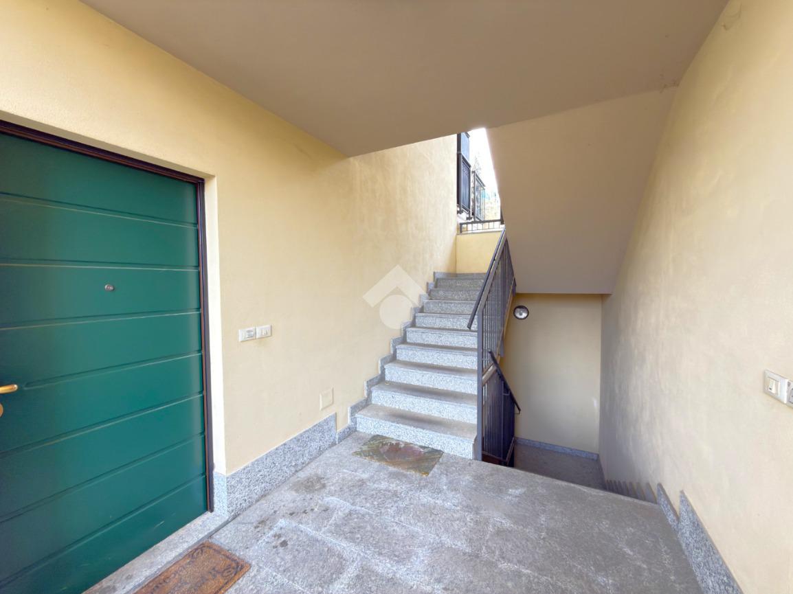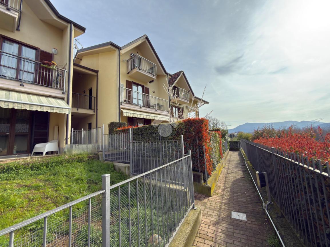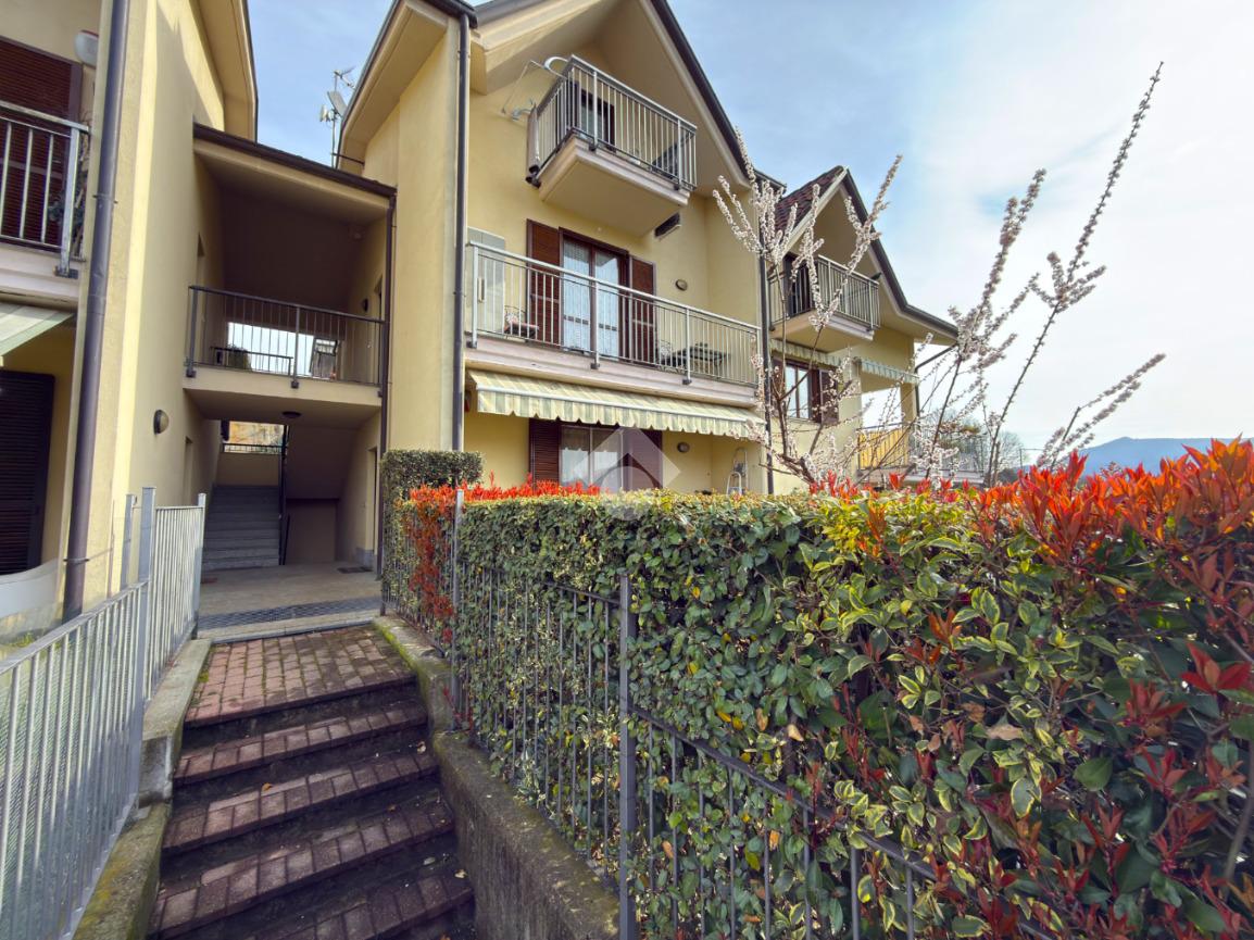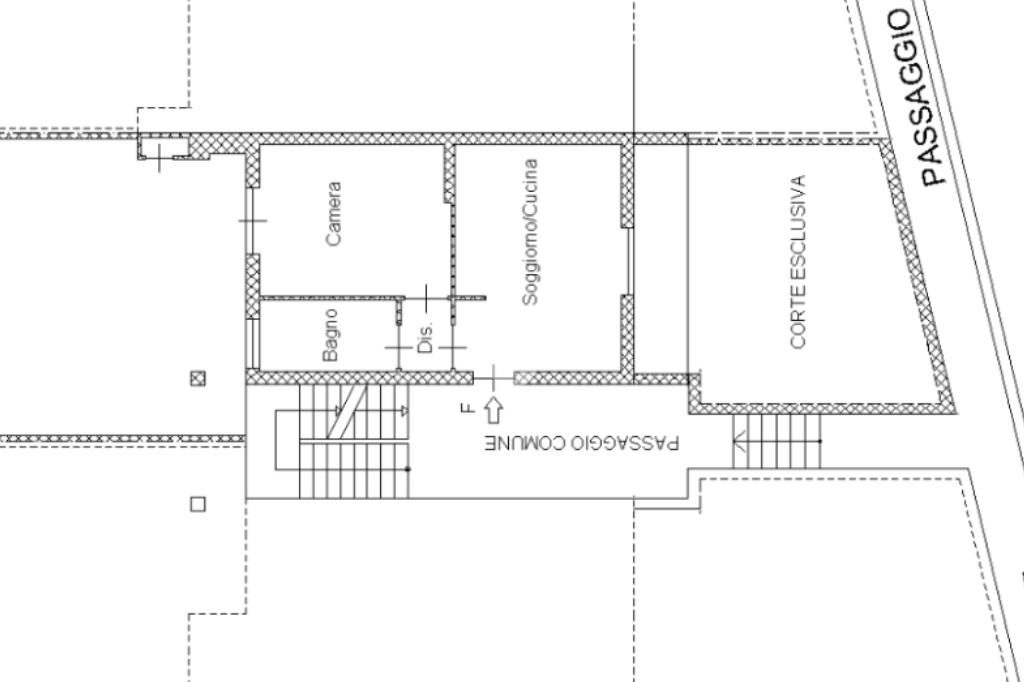 L'immobile al quale si accede dal vialetto condominiale, si sviluppa interamente fuori terra ed è composto dall'ingresso in soggiorno con cucina a vista ed uscita diretta sul giardino, il disimpegno, il bagno finestrato con doccia, la camera da letto matrimoniale con uscita diretta sul terrazzo che conduce alla seconda area esterna privata.