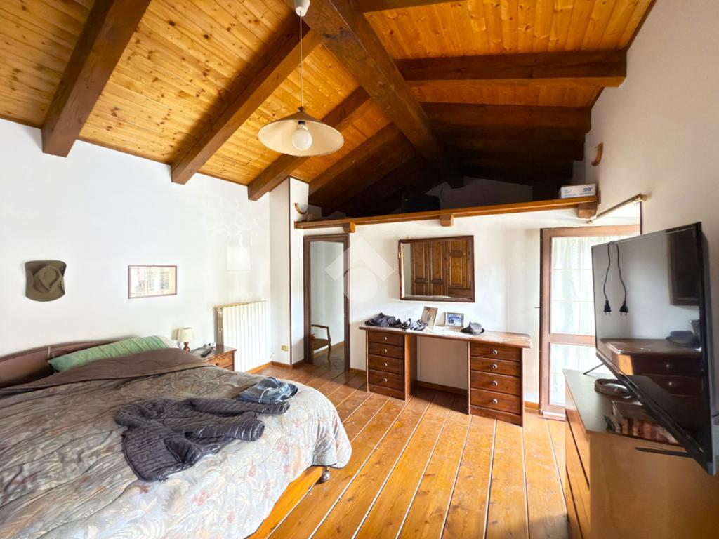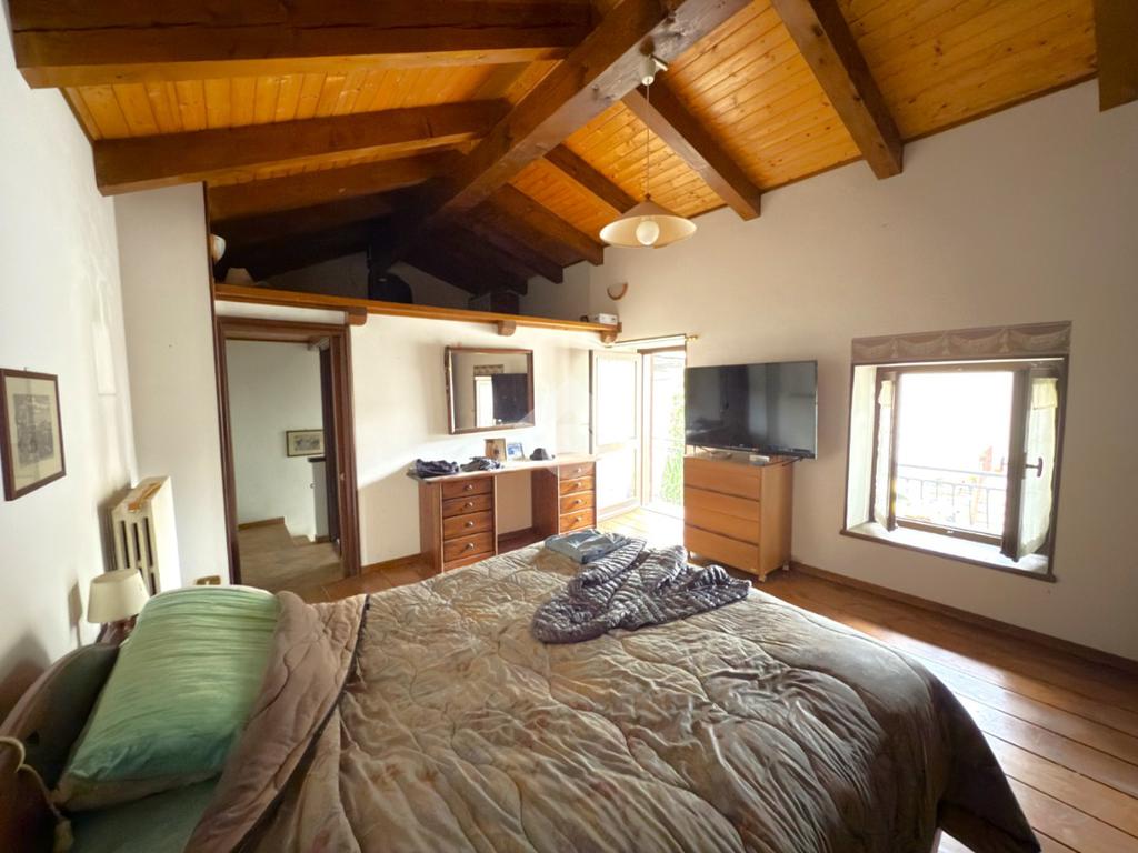 Proseguendo la scala interna si accede al secondo ed ultimo piano con tetto in legno a vista composto da una camera da letto con balcone.