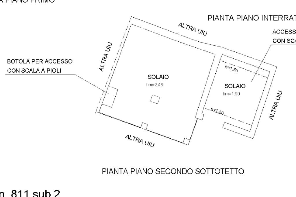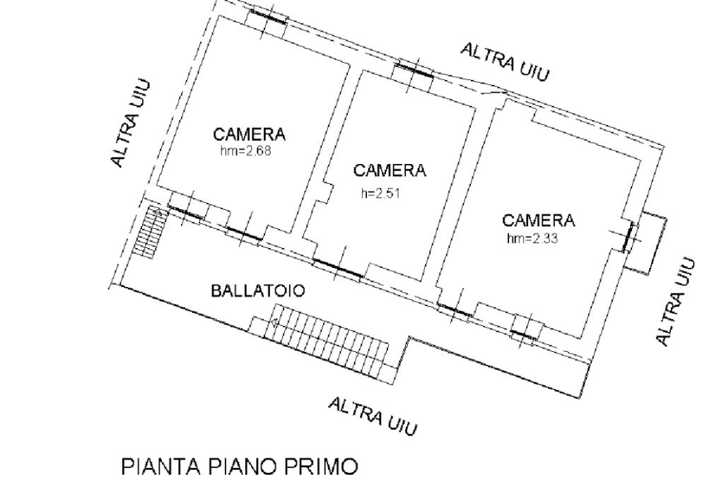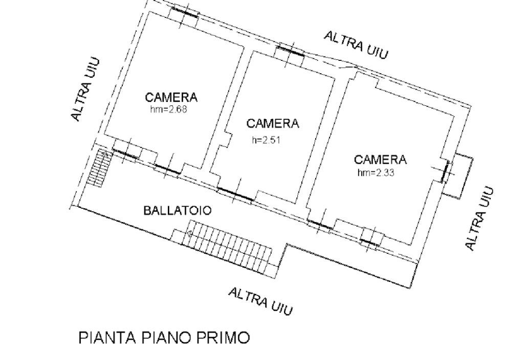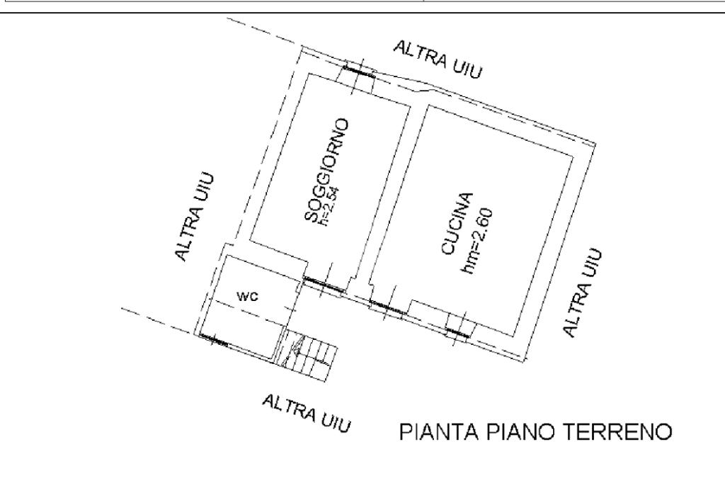 L'immobile si sviluppa su tre piani interamente fuori terra ed è composto al piano terra da un ampio magazzino, un bagno e due locali; Proseguendo la scala esterna si accede al primo piano composto da tre locali. Al terzo ed ultimo piano sottotetto un ampio locale unico non rifinito sfruttabile per ampliare gli spazi dell'abitazione.