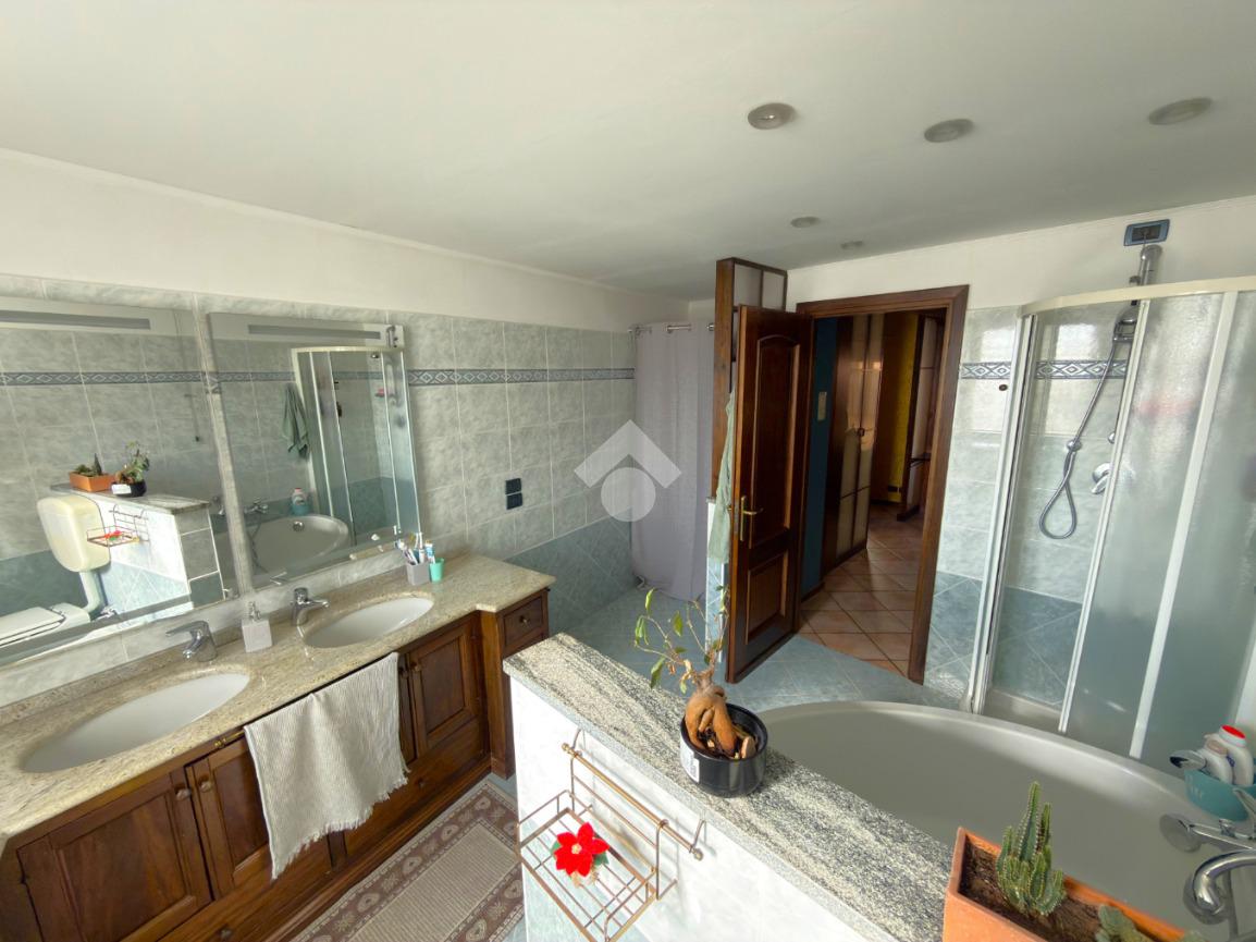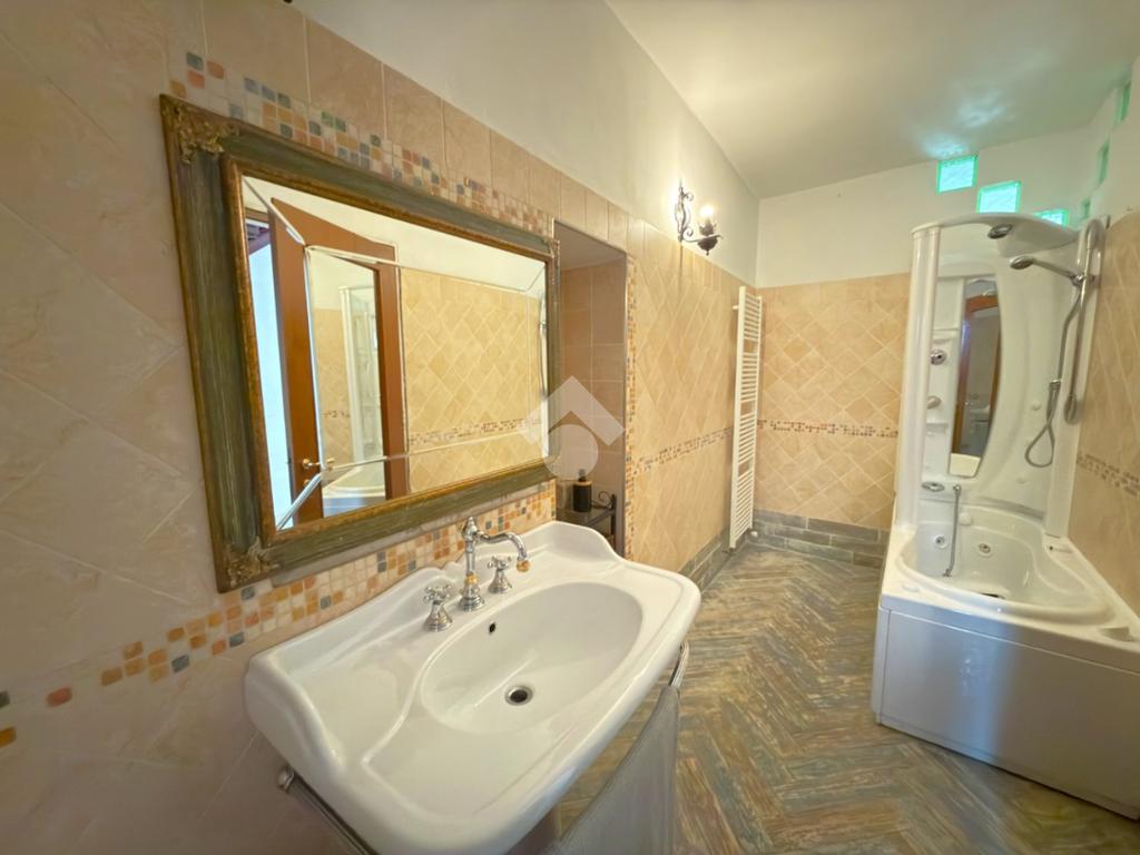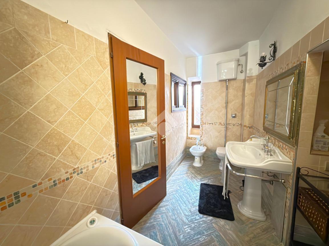 Proseguendo tramite la scala interna si accede al primo piano composto dal doppio salone con uscita diretta sul terrazzo, la cucina abitabile, il primo bagno con doccia, un loacale utilizzato come studio e l'ampio bagno con doccia, vasca e doppio lavandino;