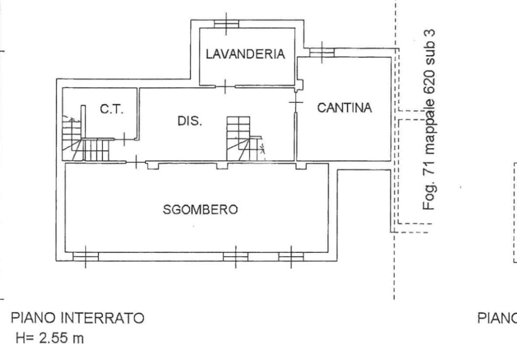 Al piano interrato troviamo la cantina, la lavanderia il locale tecnico e 3 locali sgombero.