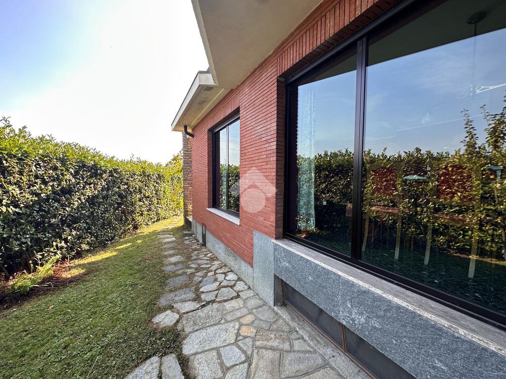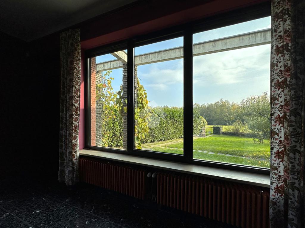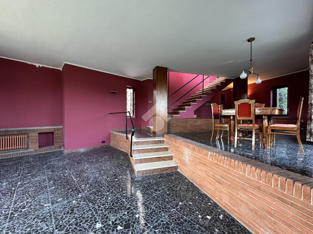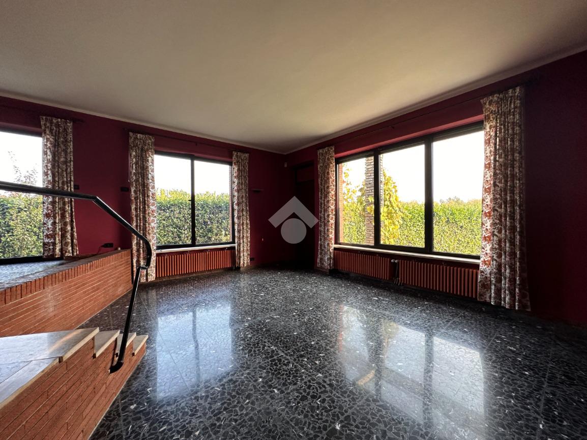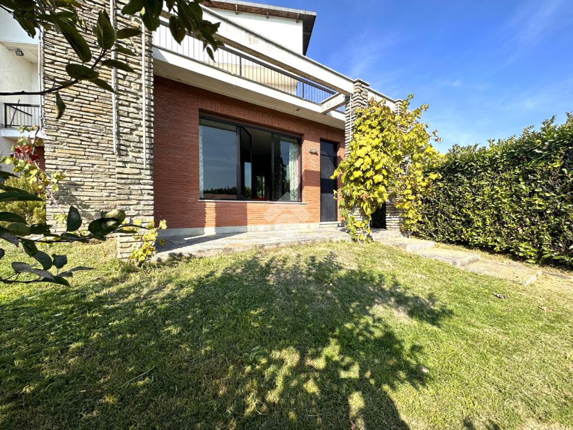 Al piano terra, la zona giorno si compone di doppio soggiorno con vetrate a parete panoramiche che affacciano sul giardino della proprietà, vi è poi una cucina abitabile ed un bagno di servizio.